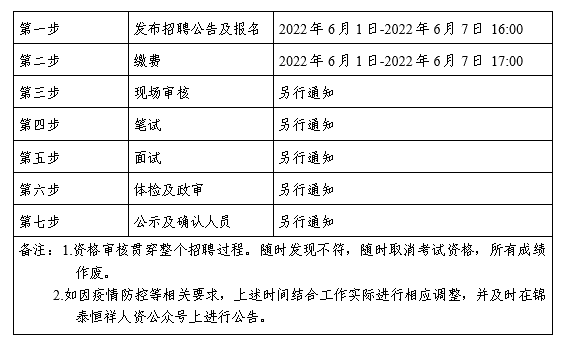 (二)體檢時(shí)間、地點(diǎn)及注意事項(xiàng)在“錦泰恒祥人資公眾號”進(jìn)行通知。