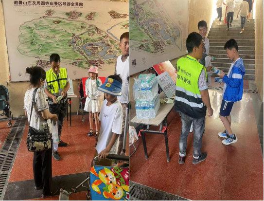 近日,受暖性高壓脊影響,我市迎來(lái)持續(xù)數(shù)天的高溫天氣,相關(guān)部門(mén)相繼發(fā)布了高溫橙色、紅色預(yù)警。市國(guó)動(dòng)辦、市國(guó)控集團(tuán)在避暑山莊門(mén)前地下人防停車(chē)場(chǎng)設(shè)置了“高溫天氣便民服務(wù)點(diǎn)”,為外地游客和本市市民免費(fèi)發(fā)放礦泉水和藿香正氣水,為出游的游客和市民提供飲水和預(yù)防中暑藥物,受到了廣大群眾的一致好評(píng)。